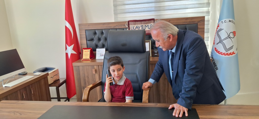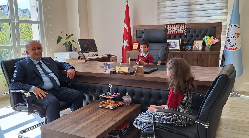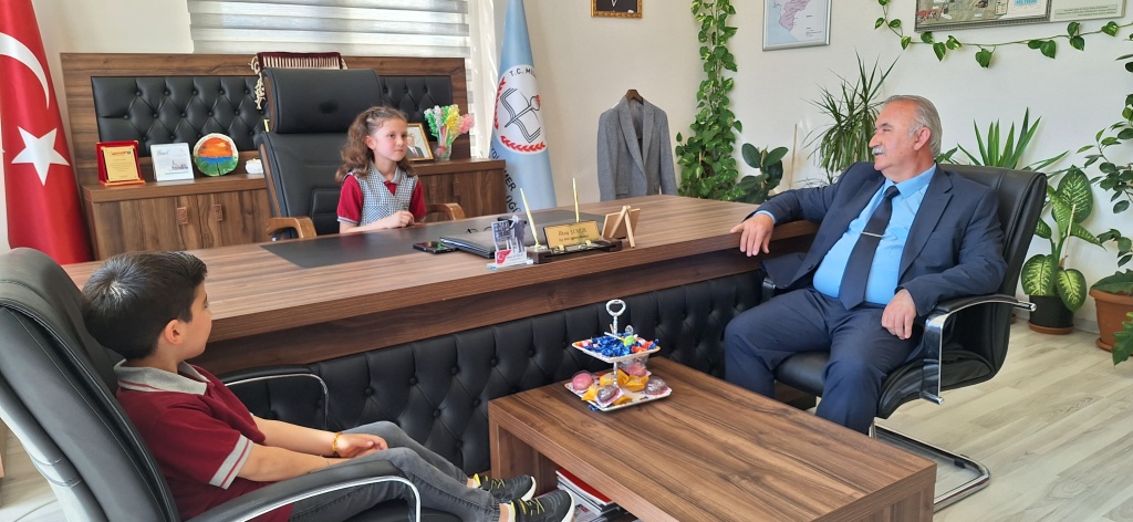 23 Nisan Ulusal Egemenlik ve Çocuk Bayramı dolayısıyla Ören Vali Ahmet Cemil Serhatlı İlkokulu öğrencilerimiz İlçe Milli Eğitim Müdürü Sayın İlkay ŞUMUR ' u makamında ziyaret etti. Ziyarette geleneksel "Temsili Makam Devri " etkinliği gerçekleştirildi. Koltuğa oturan minik öğrencilerimiz hayallerini ve dileklerini paylaşarak keyifli anlar yaşadı. Müdürümüz İlkay ŞUMUR çocukların mutluluğunun en büyük hediye olduğunu belirterek tüm çocukların 23 Nisan Ulusal Egemenlik ve Çocuk Bayramını kutladı.